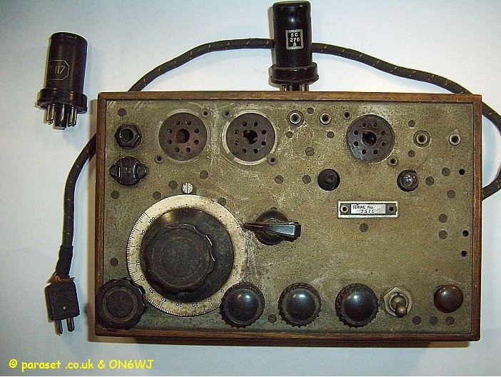 A genuine Mk7 Paraset. So here it is pictures of an original Paraset as submitted by ON6WJ. Jos is glad that he had the chance to meet a very friendly Mr. Erik Evrard the owner of a genuine and very early model Paraset who gave him the opportunity to take photographs of this unique PARASET Jos has submitted the photos but hopes that no one will make any profit from them as he is not doing so himself. This is why a watermark has been placed on each photo. They are submitted just for all enthusiasts and interested people to see!!